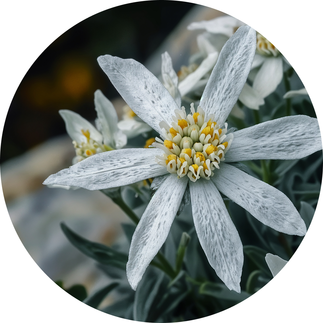 Born in the harshest Swiss altitudes, Edelweiss defends itself and your skin from oxidative stress. Rich in leontopodic acid, it provides exceptional antioxidant protection, soothing sensitivity and reinforcing the skin barrier. It leaves the complexion calm, resilient, and luminous, like a bloom untouched by time.