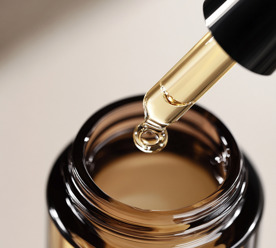 A powerful lipid antioxidant that shields skin from UV and environmental damage. It moisturizes, soothes, and enhances skin repair while amplifying the penetration of active ingredients. Together with Vitamin C, it forms a dual shield against oxidative aging.